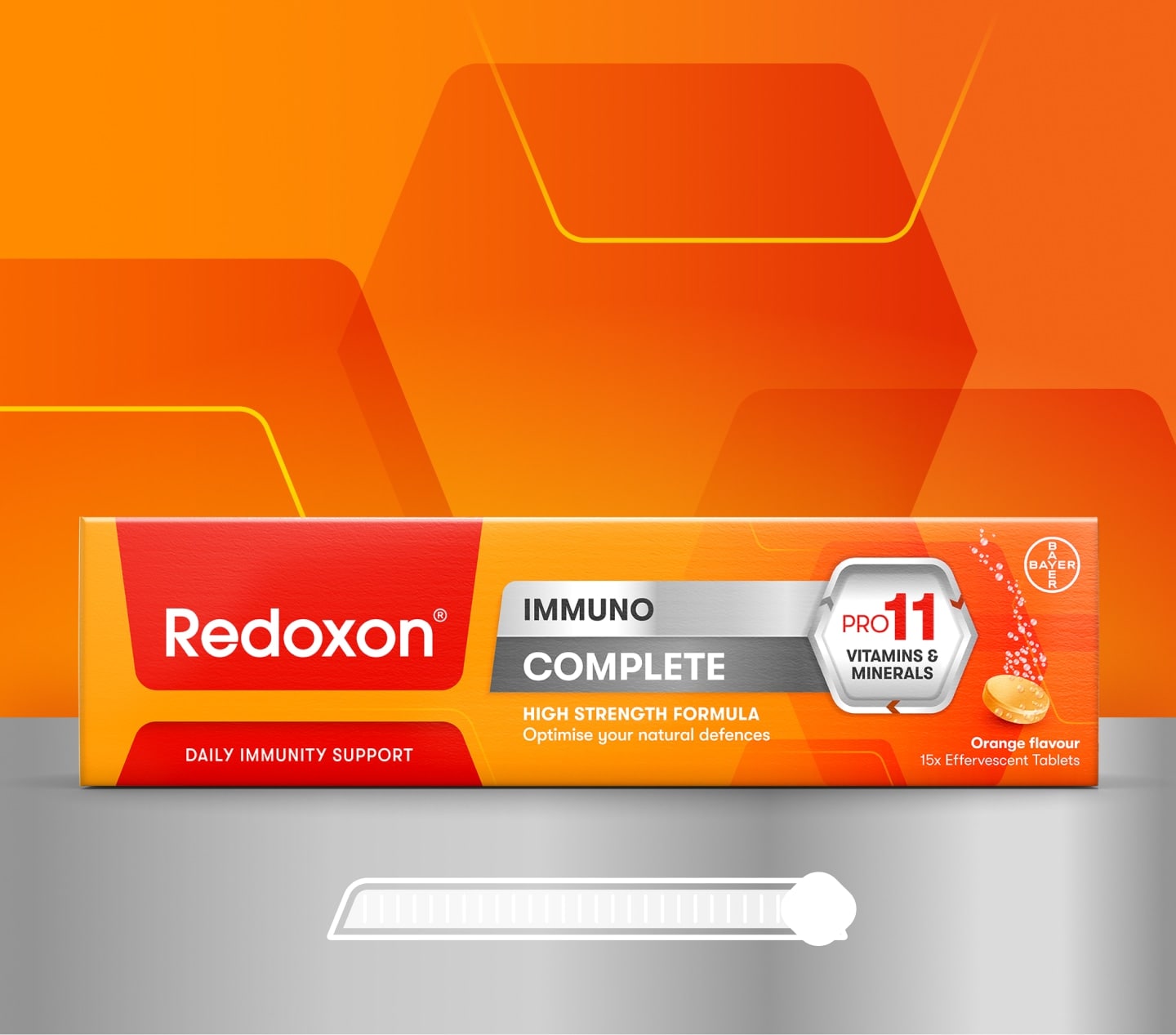 ريدوكسون® متكامل هو المكمل الغذائي الفائق لدعم المناعة اليومية. تركيبة شاملة تعزّز مناعتك، وتحتوي على 11 نوعًا من الفيتامينات والمعادن الأساسية التي ثبت علميًا أنها تدعم جهاز المناعة في المجالات التالية: تقوية المناعة، وتخفيف أعراض نزلات البرد والإنفلونزا وتقصير مدتها، ومقاومة مسببات الإجهاد المناعي الحديثة، ودعم صحتك الشاملة، والحفاظ على طاقتك بشكل طبيعي. يحتوي كل قرص فوار بنكهة البرتقال على مزيج غني من فيتامين C، وD، وB6، وB9، وB12، وE، وA، والزنك، والسيلينيوم، والنحاس، والحديد. للحفاظ على مناعة قوية طوال العام، استخدِمه بانتظام، وبادر باستخدامه فور ظهور الأعراض الأولى للمرض (مثل نزلات البرد والإنفلونزا)